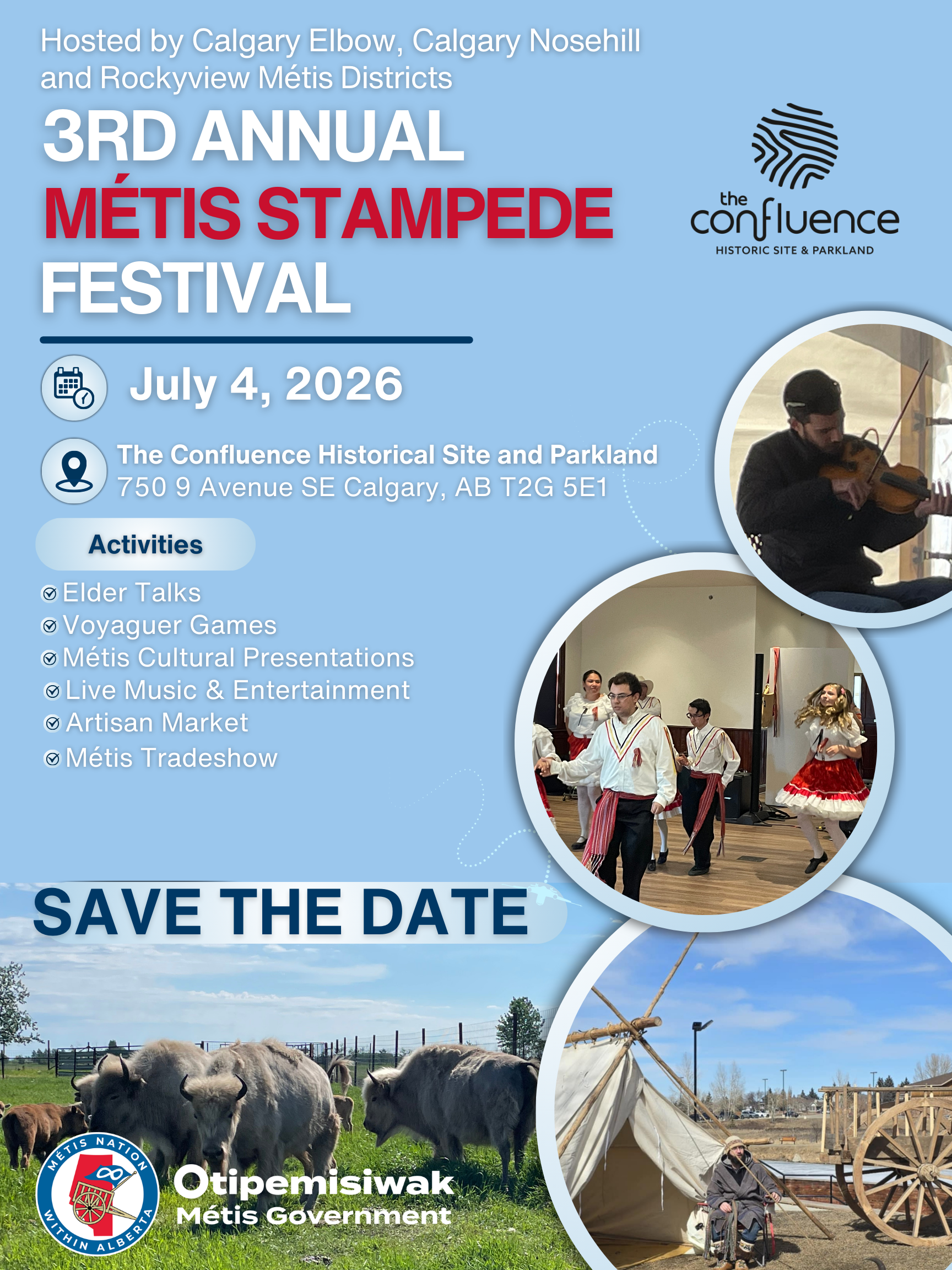 Join us July 4, 2026 at the Confluence Historic Site & Parkland for a day filled with Métis culture, community, and celebration.