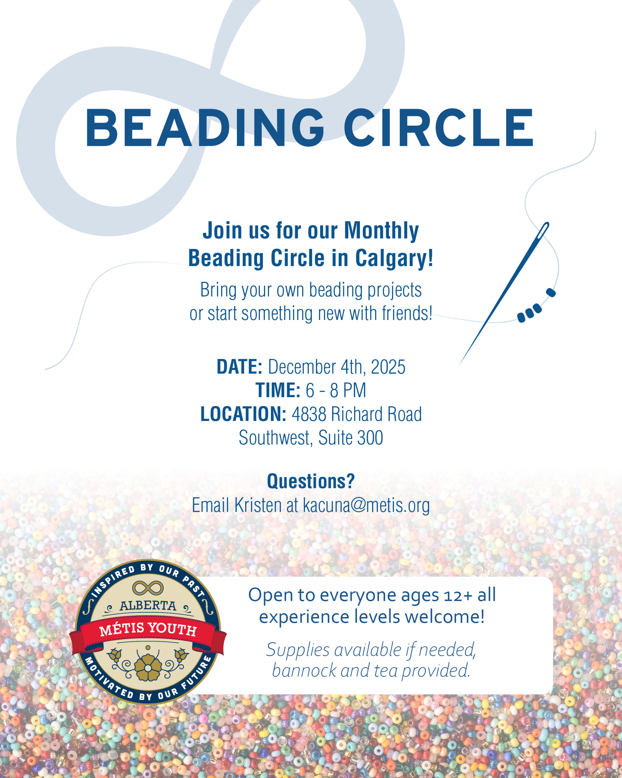 Open to everyone ages 12+, all experience levels welcome! Supplies available if needed, bannock and tea provided.