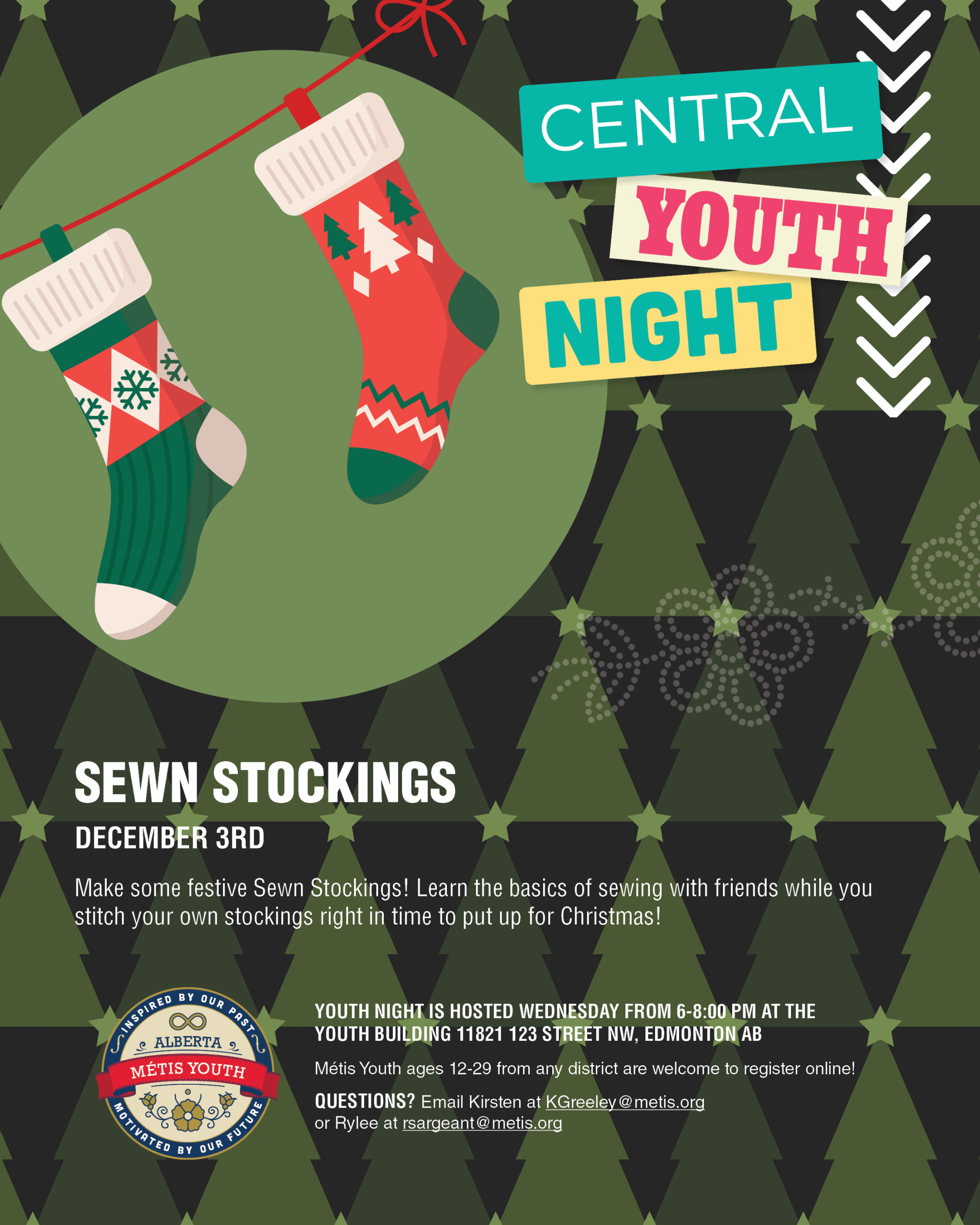 Youth night is hosted next Wednesday, December 3rd, from 6-8:00 pm at the Youth Building 11821 123 street NW, Edmonton AB