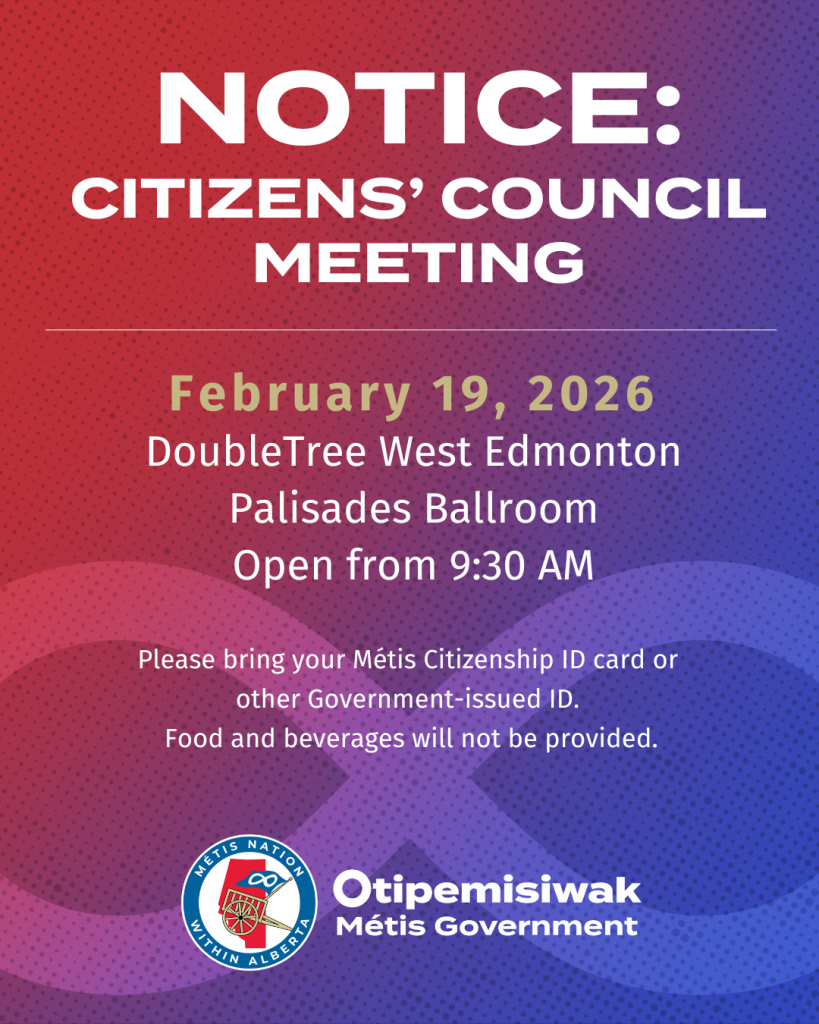 The Chair of Citizens’ Council wishes to advise Citizens that the next meeting of the Citizens’ Council will be on February 19, open from 9:30 a.m. at the DoubleTree West Edmonton (16615 109 Ave NW, Edmonton) in the Palisades Ballroom.