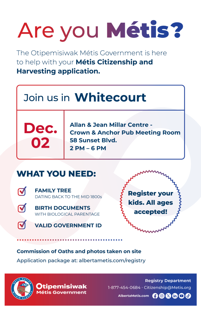 By submitting this form, you are consenting to receive marketing emails from: The Métis Nation of Alberta, 11738 Kingsway Avenue, Edmonton, Alberta, T5G 0X5, Canada, http://albertametis.com. You can revoke your consent to receive emails at any time by using the SafeUnsubscribe® link, found at the bottom of every email. Emails are serviced by Constant Contact.