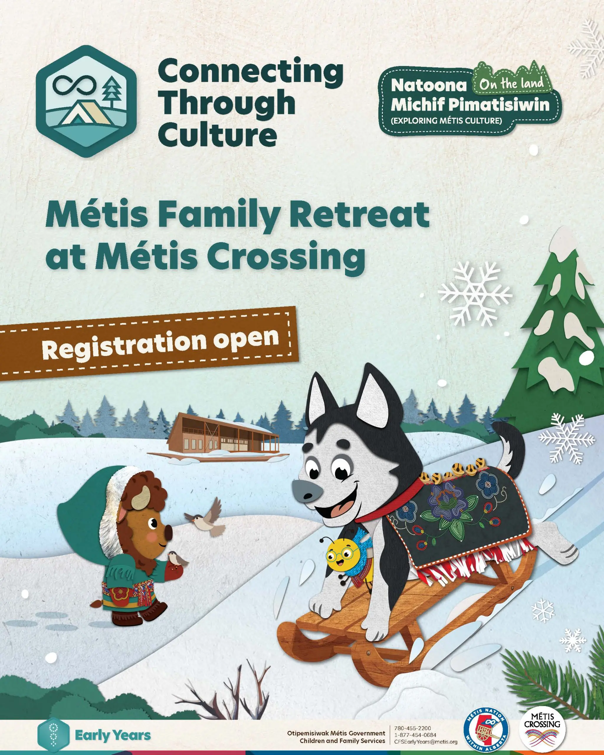 The Otipemisiwak Métis Government’s Children and Family Services (CFS) Department invites applications for the Connecting Through Culture Family Retreat – Winter 2026 at Métis Crossing.