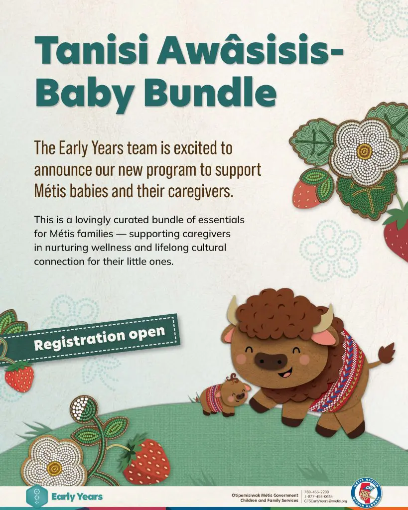 The Otipemisiwak Métis Government’s CFS Early Years team is excited to support Métis families across Alberta with essential items, cultural resources, and guidance to welcome new babies and foster Métis identity and belonging.